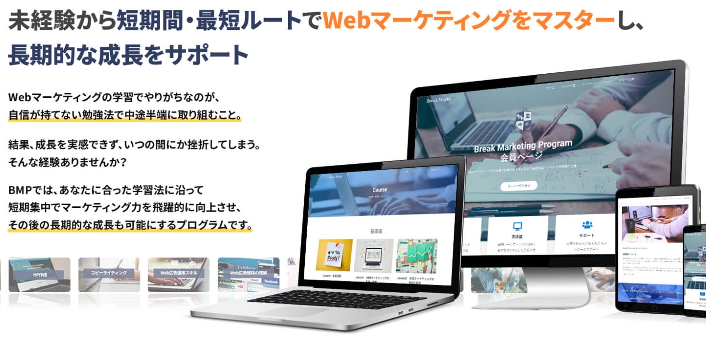 BMPは、「短期間でプロレベルの実務スキルを身につけたい」「未経験からマーケターを目指したい」という方にとって、非常におすすめのWebマーケティング講座です。