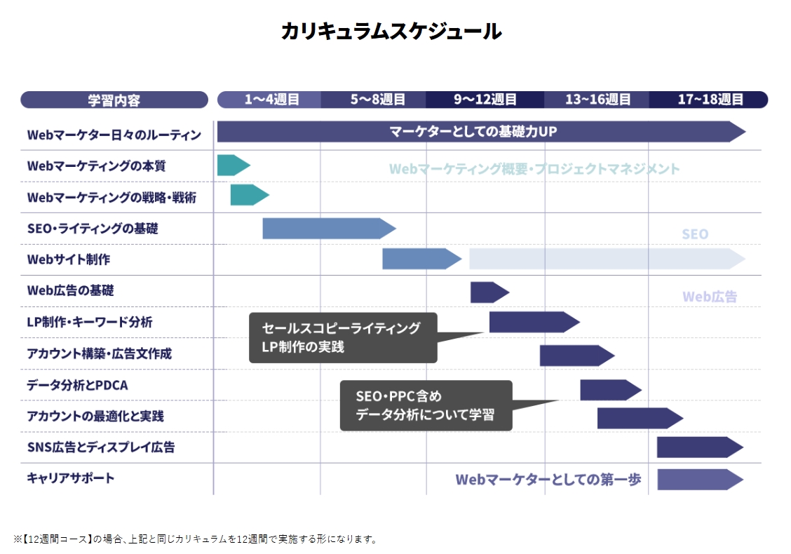 「Webマーケティングを学んでキャリアアップしたい」「短期間で実務レベルのスキルを身につけたい」
